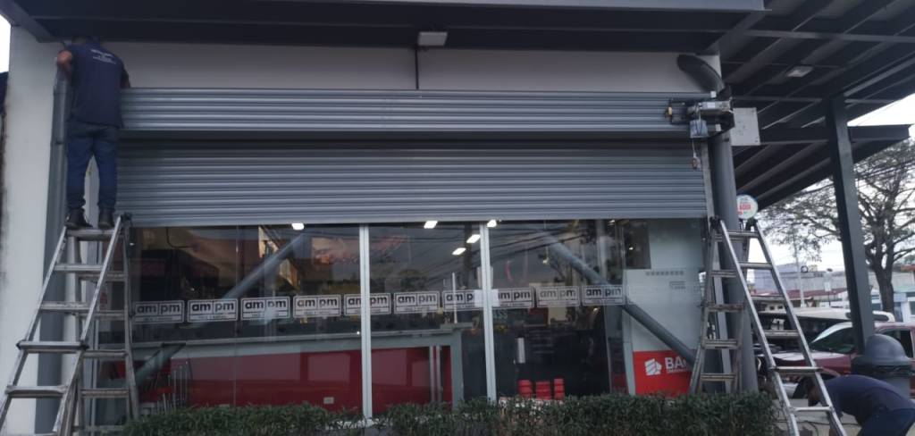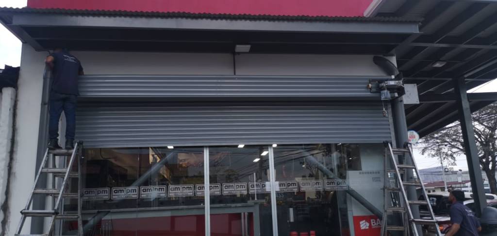 Uno de nuestros clientes es Supermercados ampm, aquí vemos una reciente instalación de cortinas metálicas para uno de sus locales comerciales en San José.